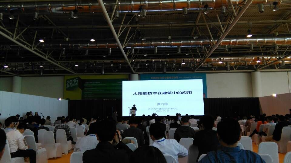 上午,“2016中國(濟南)太陽能建筑一體化(BIPV)高層論壇”在展館二樓會議區(qū)舉行,現(xiàn)場近400名行業(yè)人士參會。來自住建部、清華大學(xué)建筑設(shè)計研究院的領(lǐng)導(dǎo)和專家現(xiàn)場針對裝配式建筑太陽能技術(shù)在建筑中的應(yīng)用展開演講和討論。下午 ,“太陽能集熱系統(tǒng)、光伏發(fā)電應(yīng)用經(jīng)驗交流會 ”也在二樓會議區(qū)舉行。