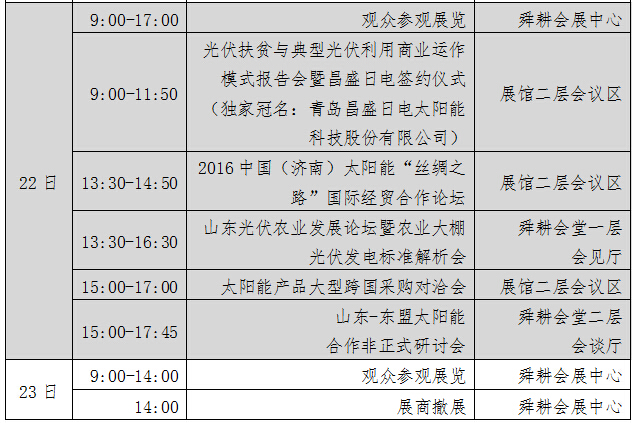 中國(guó)(濟(jì)南)國(guó)際太陽(yáng)能利用大會(huì)暨展覽會(huì),作為山東省重點(diǎn)培育與發(fā)展的會(huì)展項(xiàng)目,充分依托山東省豐富的太陽(yáng)能產(chǎn)業(yè)資源優(yōu)勢(shì),自2006年起已連續(xù)舉辦了10屆。作為太陽(yáng)能行業(yè)信息交流、產(chǎn)品發(fā)布、供需對(duì)接的綜合性平臺(tái),充分見(jiàn)證了國(guó)內(nèi)外太陽(yáng)能行業(yè)的每一次重大技術(shù)革新和市場(chǎng)發(fā)展變化,已成為我國(guó)重要的區(qū)域類(lèi)太陽(yáng)能行業(yè)盛會(huì)。