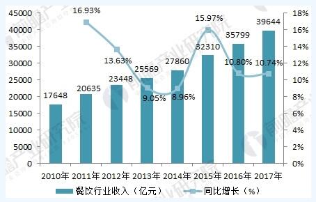 我國餐飲業(yè)發(fā)達(dá),是全球知名的飲食大國。而且隨著經(jīng)濟(jì)增長,人們生活水平提高,在餐飲方面的消費(fèi)與日俱增。據(jù)國家統(tǒng)計局?jǐn)?shù)據(jù)顯示,2017全年我國餐飲收入為39644億元,較上一年同比增長10.74%。