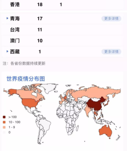 累計收到港澳臺地區(qū)通報確診病例39例:香港特別行政區(qū)18例(死亡1例),澳門特別行政區(qū)10例,臺灣地區(qū)11例。