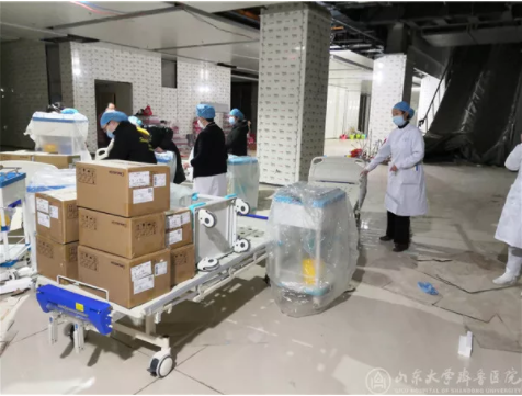 今天下午,山東醫(yī)療隊全體人員正式進駐大別山區(qū)域醫(yī)療中心。為今晚收住患者做最后的準備。