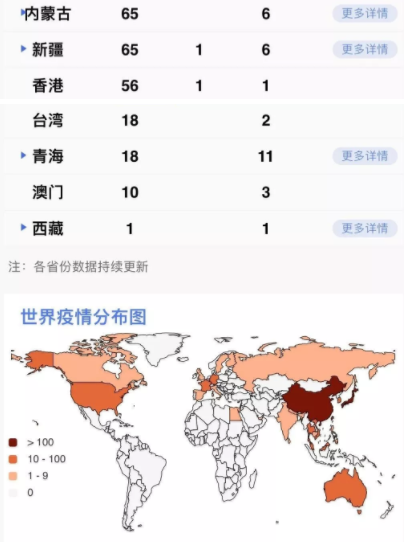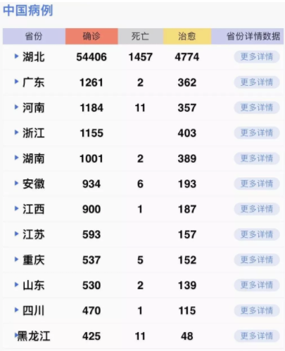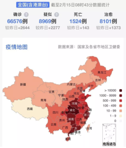 據(jù)31個(gè)?。ㄗ灾螀^(qū)、直轄市)和新疆生產(chǎn)建設(shè)兵團(tuán)報(bào)告,現(xiàn)有確診病例56873例(其中重癥病例11053例),累計(jì)治愈出院病例8096例,累計(jì)死亡病例1523例,累計(jì)報(bào)告確診病例66492例,現(xiàn)有疑似病例8969例。累計(jì)追蹤到密切接觸者513183人,尚在醫(yī)學(xué)觀察的密切接觸者169039人。