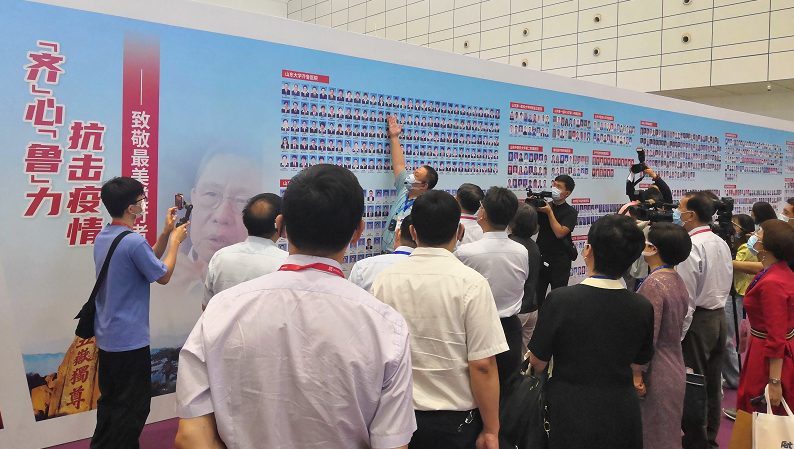 本次博覽會推出了以“齊”心“魯”力、大愛無疆為主題的“致敬逆行英雄——抗擊新冠疫情紀(jì)實(shí)展”和“捐贈企業(yè)圖片展”?,F(xiàn)場通過圖片專展+LED視頻播放+匯報(bào)演出及網(wǎng)站、微信、抖音等線上同步直播的方式,謳歌廣大白衣天使逆行出征,守醫(yī)者初心、擔(dān)健康使命,以奉獻(xiàn)護(hù)佑生命 ,以生命踐行使命,護(hù)衛(wèi)著人類生命之舟英雄事跡,成為新時(shí)代最可愛的人。展會期間,曾參與支援湖北的醫(yī)護(hù)人員到會參觀還將享受組委會在指定賓館提供免費(fèi)兩天住宿的“最美逆行專屬禮遇”。