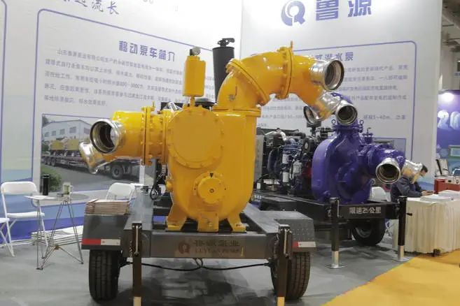 “這次我公司帶來了三種新型防汛排澇泵車,其中有履帶式、強自吸式、自吸式移動泵車,最大的特長是適合復雜路況,救災場所普通車輛過不去的地方,上水快,排水量大。”