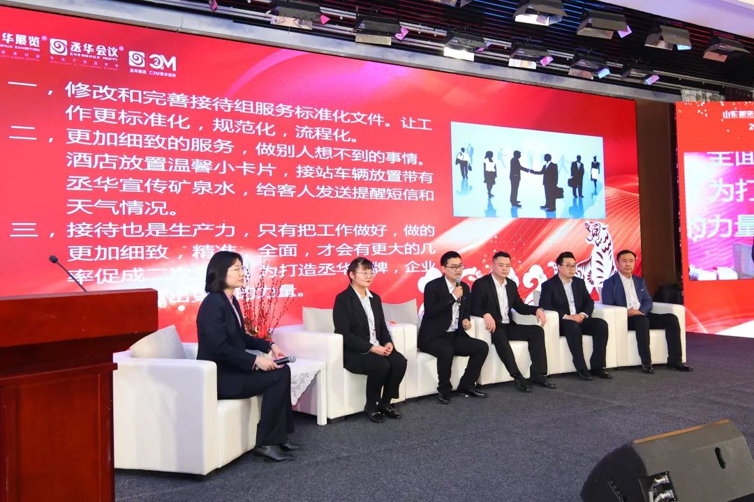 此主題沙龍是由行政總監(jiān)侯兆芳主持。參與話(huà)題討論的是來(lái)自展覽現(xiàn)場(chǎng)運(yùn)營(yíng)部龍飛、會(huì)議現(xiàn)場(chǎng)運(yùn)營(yíng)部高銳、接待組王明、行政部李莉、藝術(shù)總監(jiān)宋欣陸?,F(xiàn)場(chǎng)圍繞“如何將細(xì)致、溫馨、藝術(shù)的服務(wù)觸達(dá)到每位客戶(hù)的心中”這一內(nèi)容,探討在我們的展覽會(huì)以及論壇活動(dòng)現(xiàn)場(chǎng),如何讓每一位來(lái)賓都能感受到我們丞華展覽、丞華會(huì)議卓越的服務(wù)。