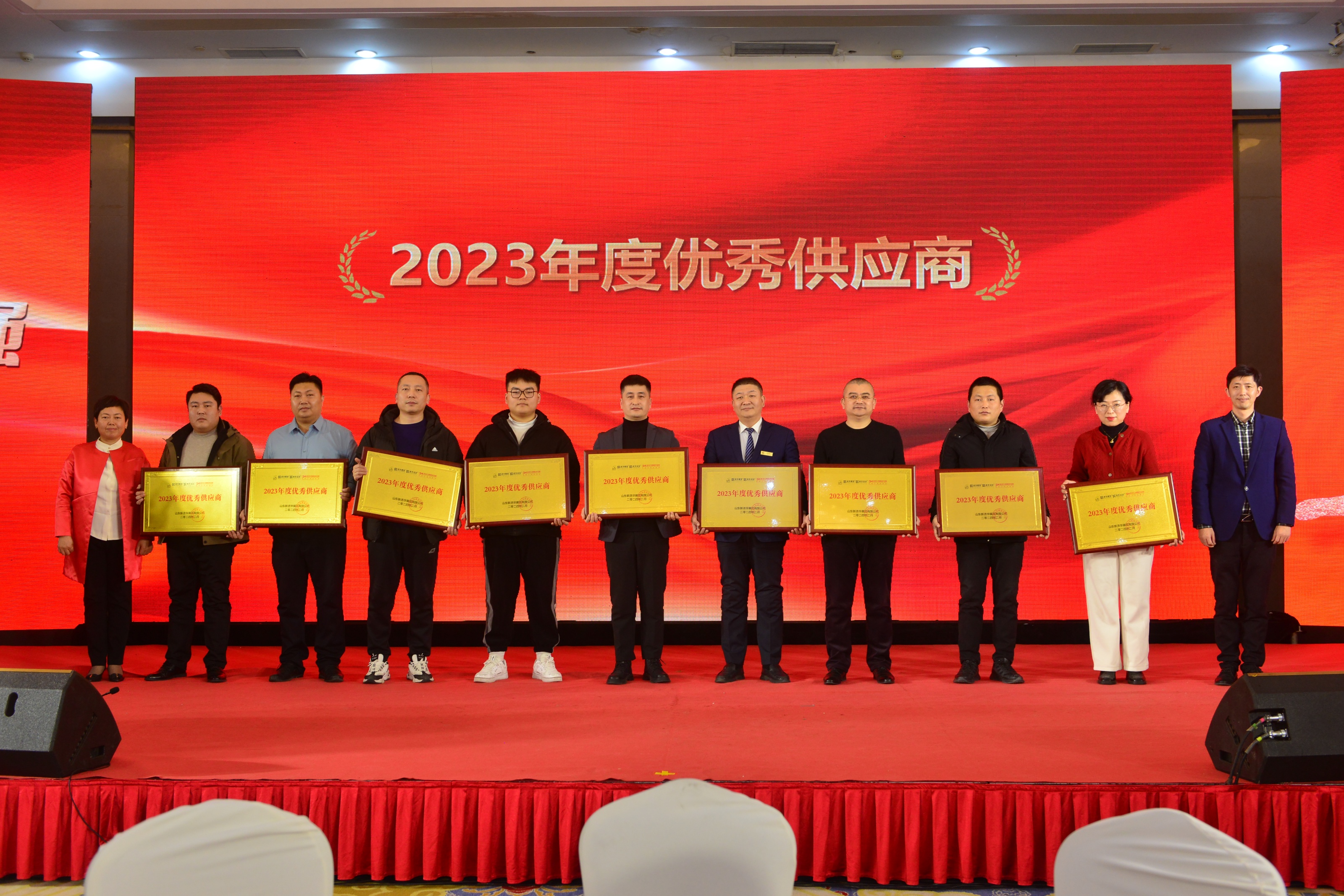 同時,經(jīng)過公司多個部門推薦和評選,山東國際會展集團(tuán)有限公司、青島世博城、山東大廈、南郊賓館、世紀(jì)開元、大北文化傳媒、泰明達(dá)信息科技、鵬欣廣告、澤睿廣告?zhèn)髅降?7家合作單位獲得公司2023年度優(yōu)秀合作供應(yīng)商稱號,并現(xiàn)場頒發(fā)證書獎牌。
