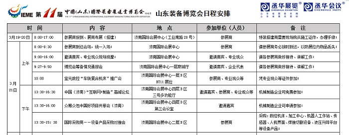 2016山東裝備博覽會——日程安排